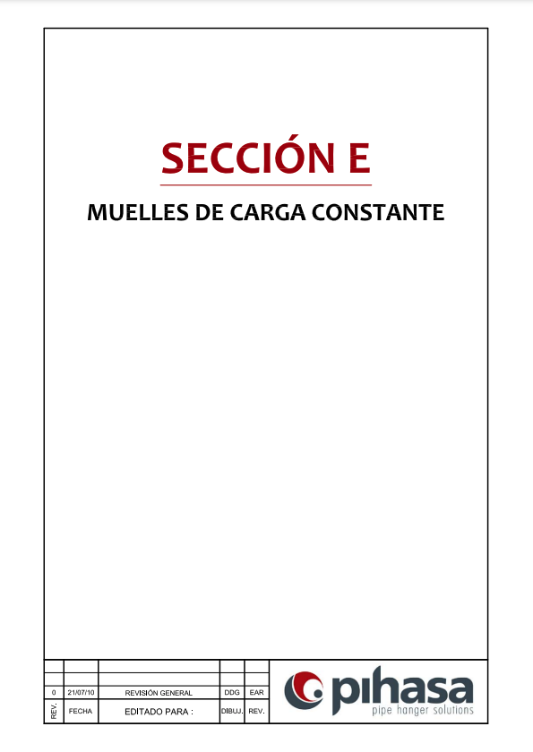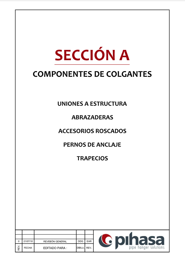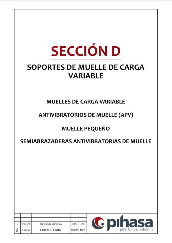 Descargas Catálogo de soportes de tuberías Catálogo de soportes de tuberías Catálogo 147 completo ES EN FR Sección A Componentes de colgantes ES EN FR Sección B Apoyos a tubería ES EN FR Sección C Soportes preaislados ES EN FR Sección D Soportes de muelle de carga variable ES EN FR Sección E Muelles de carga constante ES EN FR Sección F Restricciones mecánicas y amortiguadores hidráulicos ES EN FR Apéndice catálogo 147 ES EN FR Ver guías de montaje para tuberías ¿Tienes alguna duda o consulta? Contáctanos