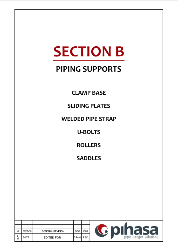 PIHASA's core business is the manufacture and supply of catalogue supports for industrial piping.