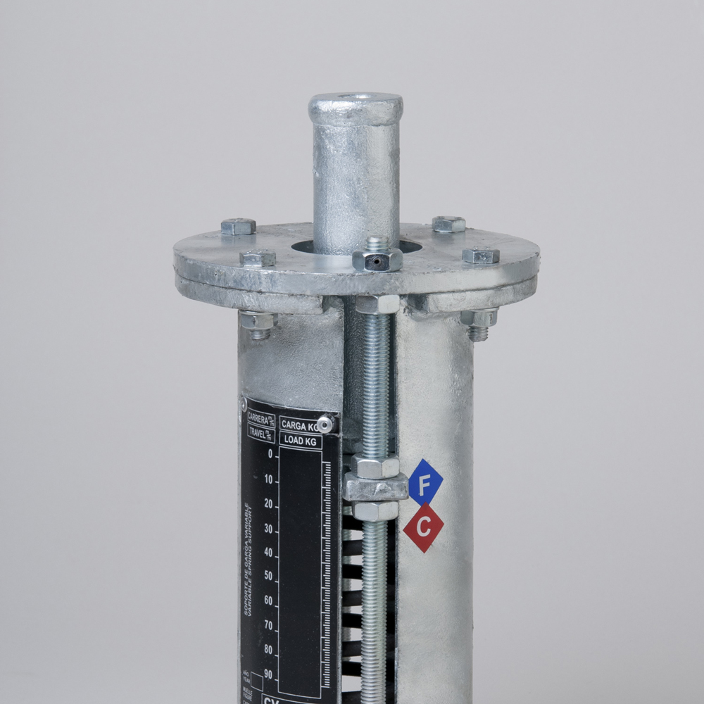 Spring supports allow vertical pipe displacement due to thermal expansion or contraction, and support the weight of the pipe system. In a variable spring support, load varies at a constant rate with the vertical travel. For that reason, they are used when the vertical movement is of a low or medium range (up to 50-75 mm).